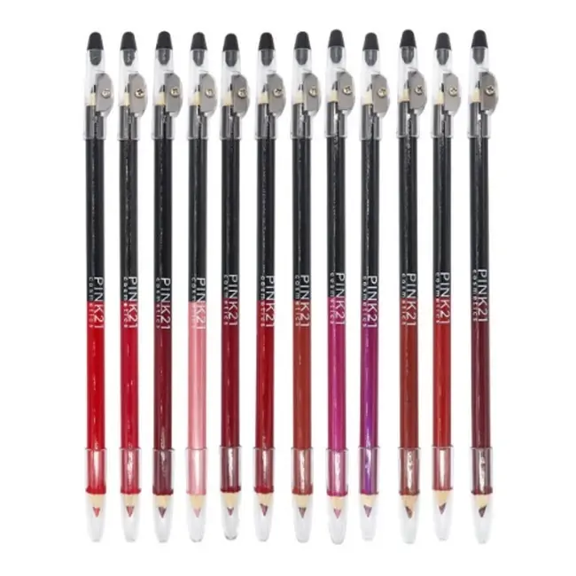 Kit 12 Lápis de Olhos Preto & Contorno Labial Cores Variadas Pink 21